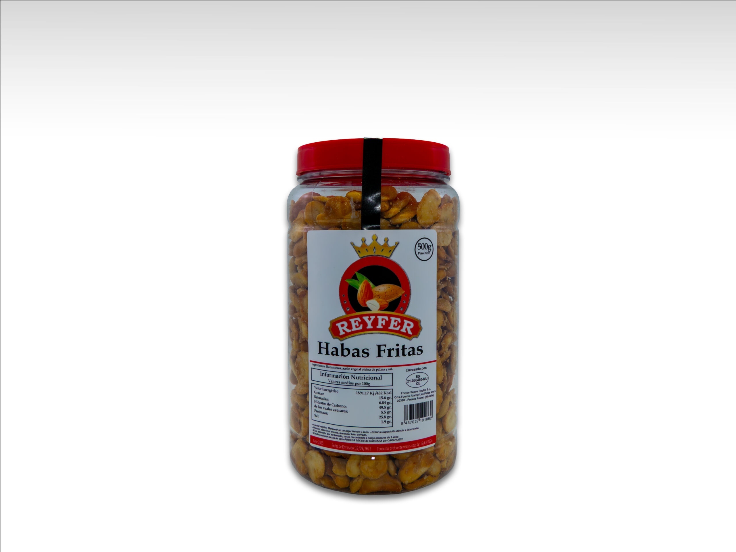 Habas fritas en formato Bote 500 gramos.